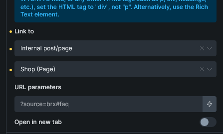 Example if you choose Taxonomy: You don’t have the option for URL parameters.