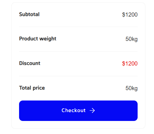 Display the final payable amount after discounts, taxes, and additional fees. - Cart Total Weight