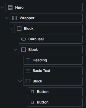I have a Heading, Basic Text, and a block with 2 buttons. YMMV