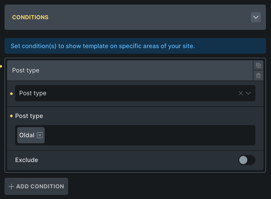 Condition: Post type = Page