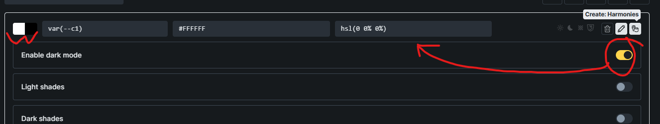 that is exacly what new feature brings. when you enable the dark mode for a color it gets inverted sometimes inverted color is good sometimes not. it should manualy finetuned anyway its fine for me.