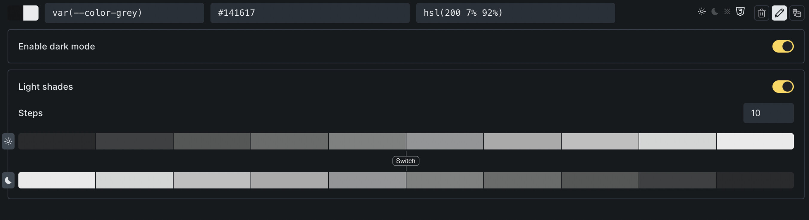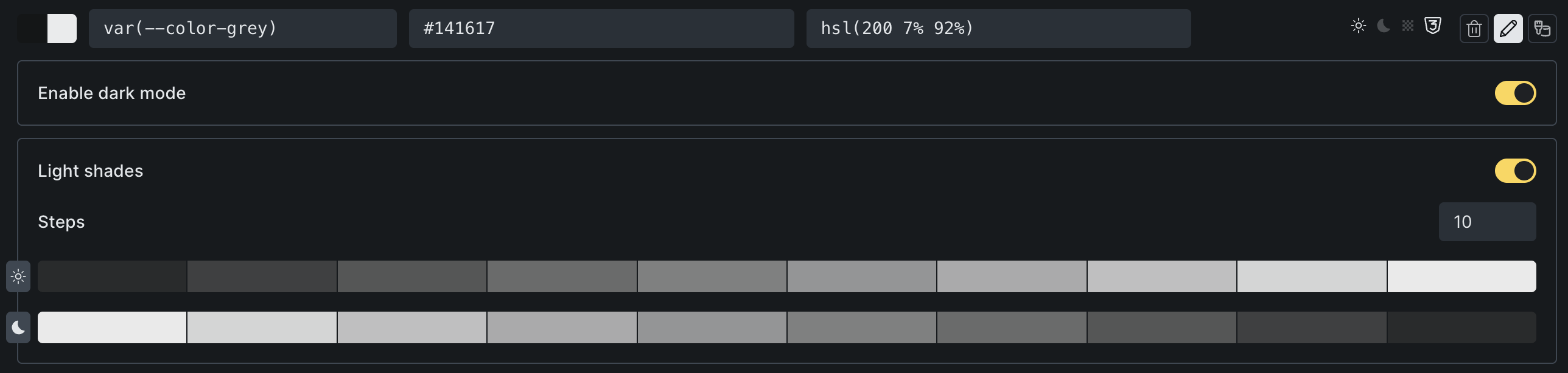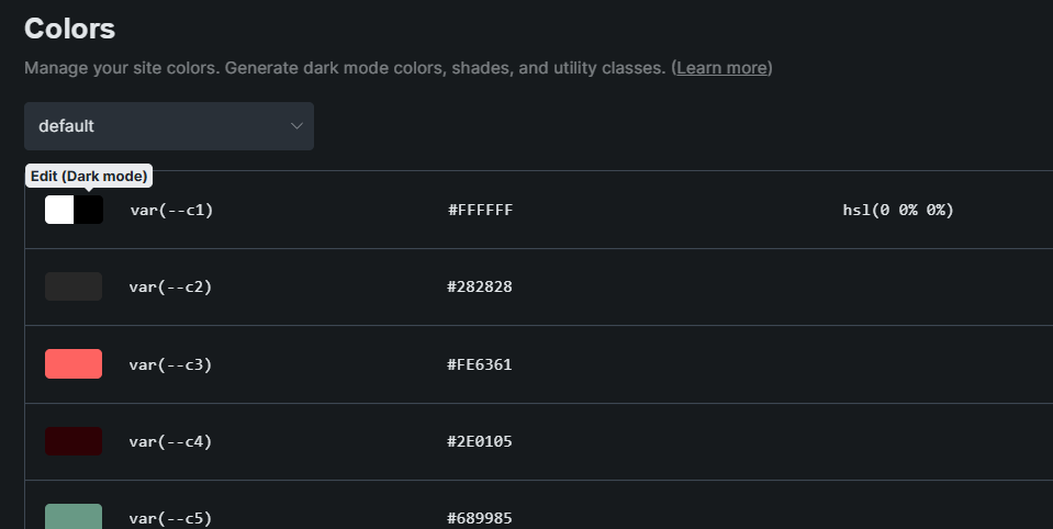 color setup light/dark color variables