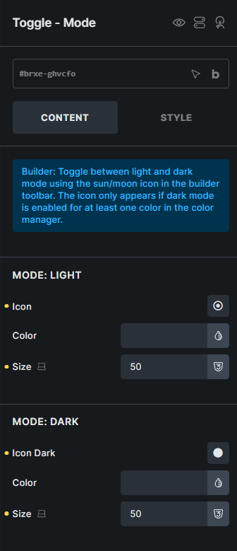 toggle element for frontend