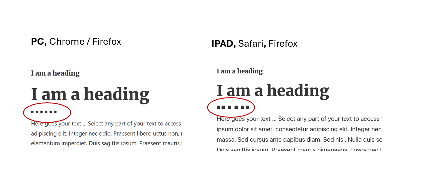 However, on my iPad (Safari and Firefox), the dots are square and the spacing is inconsistent.