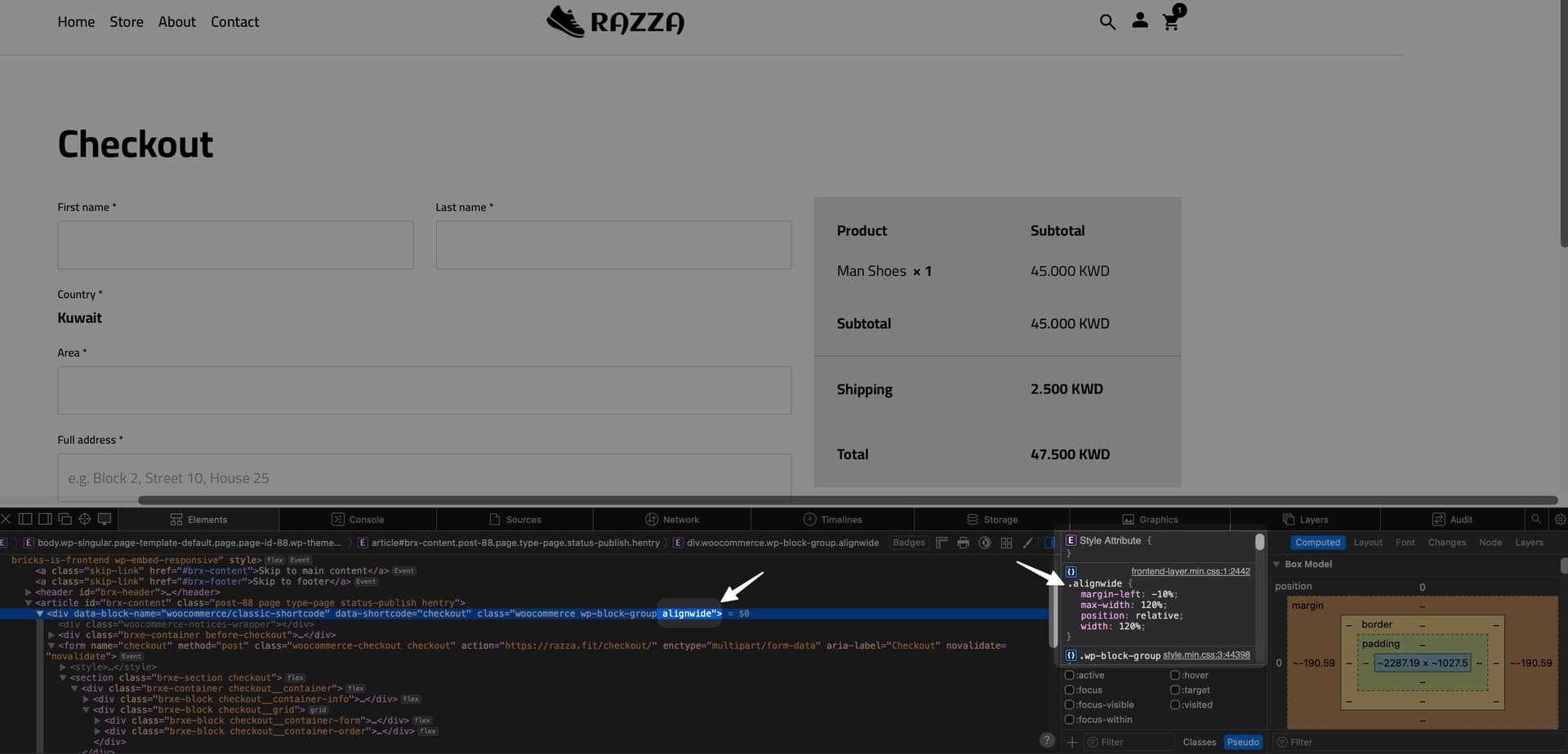 The easiest way to prevent the overflow is to remove the .alignwide setting from the block in Gutenberg. It shouldn’t make a difference (apart from fixing the overflow), since the cart is still rendered inside a bricks container (which has a fixed width anyway).