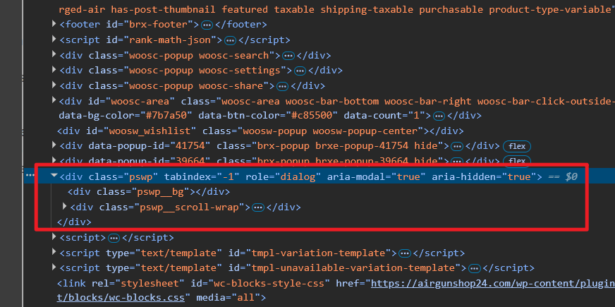 Photoswipe element add empty space before BODY close tag.