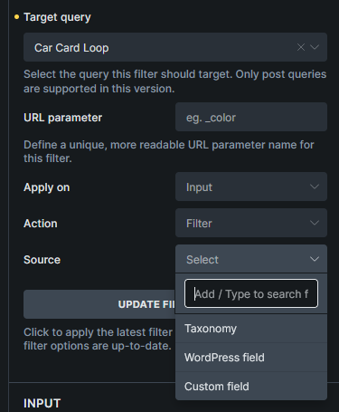 Now, I would like to create a filter for it using Brick’s filter fields.