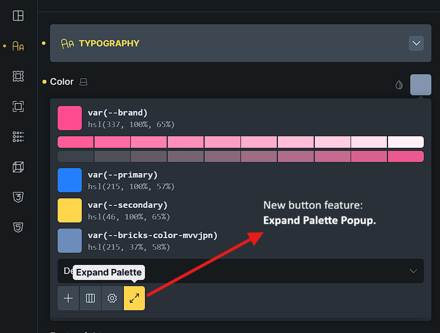 1. “Popup” for the Color Palette selector: