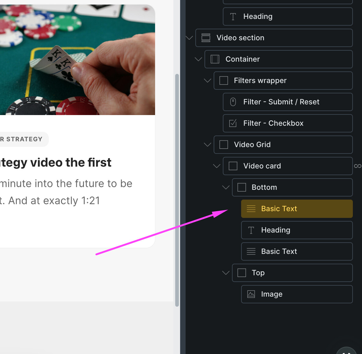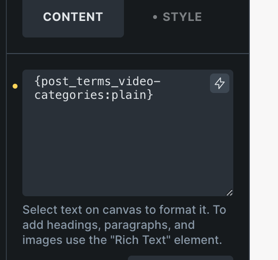 This is attached to the taxonomy. So when I click on the taxonomy, i get to choose a color with a color picker. But when I create u query loop and choose the video category inside and want to set a BG color for that text element, I can’t figure out what to put in.