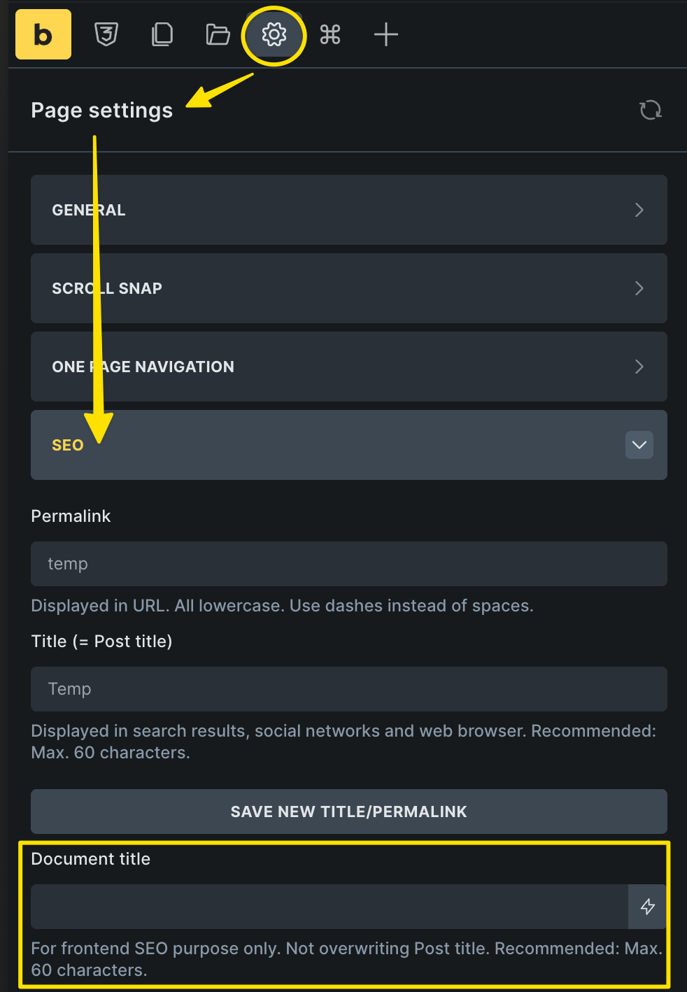 Simple thing. I click create page, edit with Bricks and then I get your builder. But for the life of me I cannot find where to set the page title.
