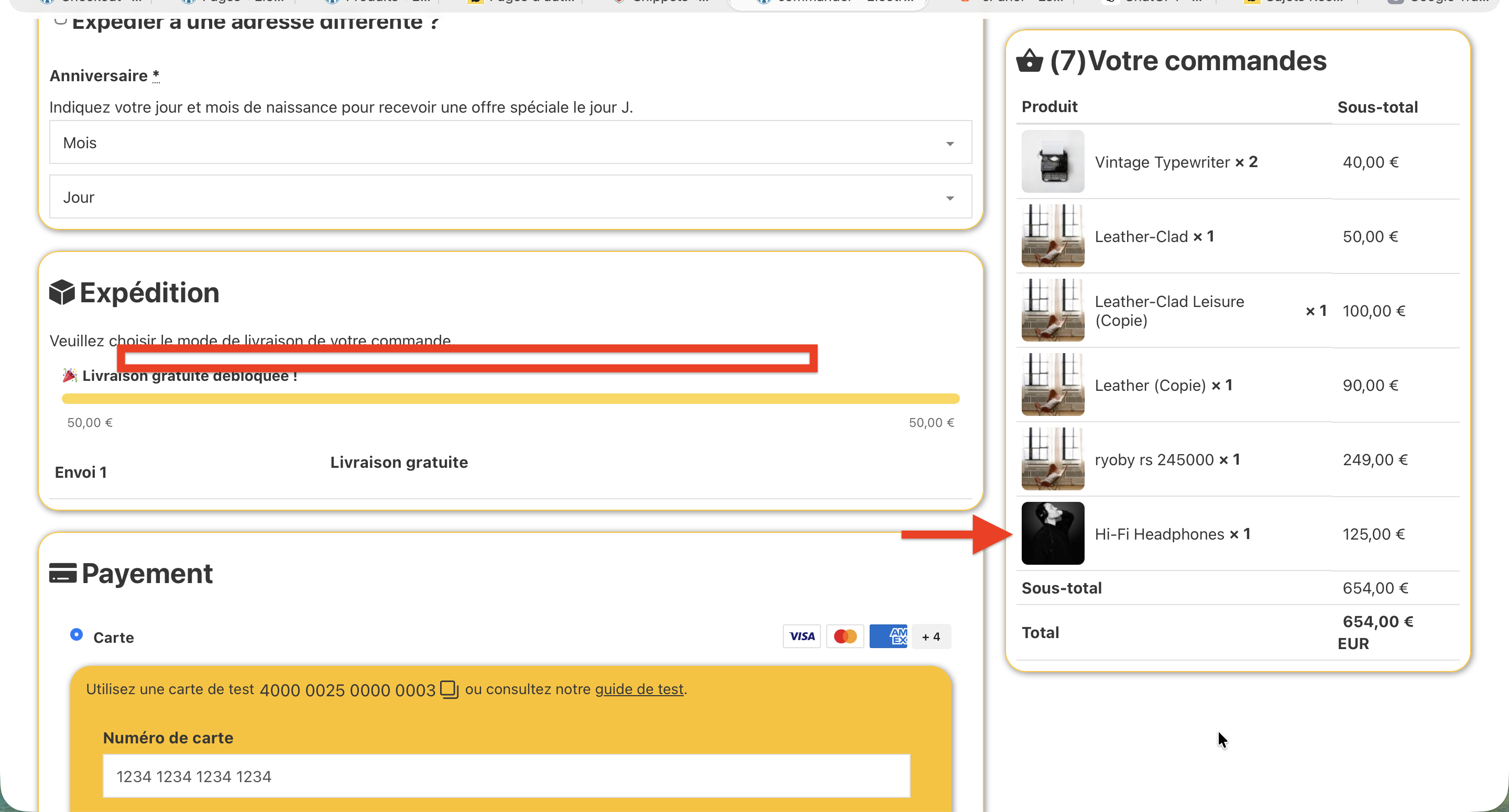 I want to display a text if there is a product in my cart that has a “made to order / on order” status (“sur commande”).