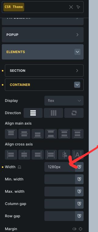 uh… Container? I see width and 1100px is suggested but not actually entered. I enter 1400px and save. Done.