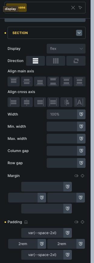 It is showing the default, but the width on the actual container itself doesn’t show the"dim" default, which ads to the confusion. All the default values that are not CSS defaults should show “dim” values in the theme style and in the elements. Once you change them in the theme style, they should show “dim” values for the elements to reflect the new default.