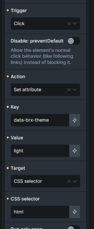 I tried to create a custom dark/light mode toggle using interactions. The switch to dark/light mode works fine, but the problem is that if it is on dark mode and I reload the browser, it reverts back to light mode.
