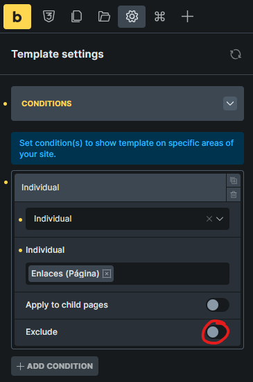 How do I create a template that gets used on every post or page except the ones I want to create/edit in Bricks?