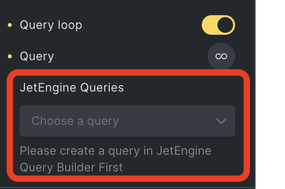 You will need to select the specific JetEngine Query Builder query you want to use. In order to do so, first close the first “Type” dialog (shown in your second screenshot labeled ‘Query Loop:’).