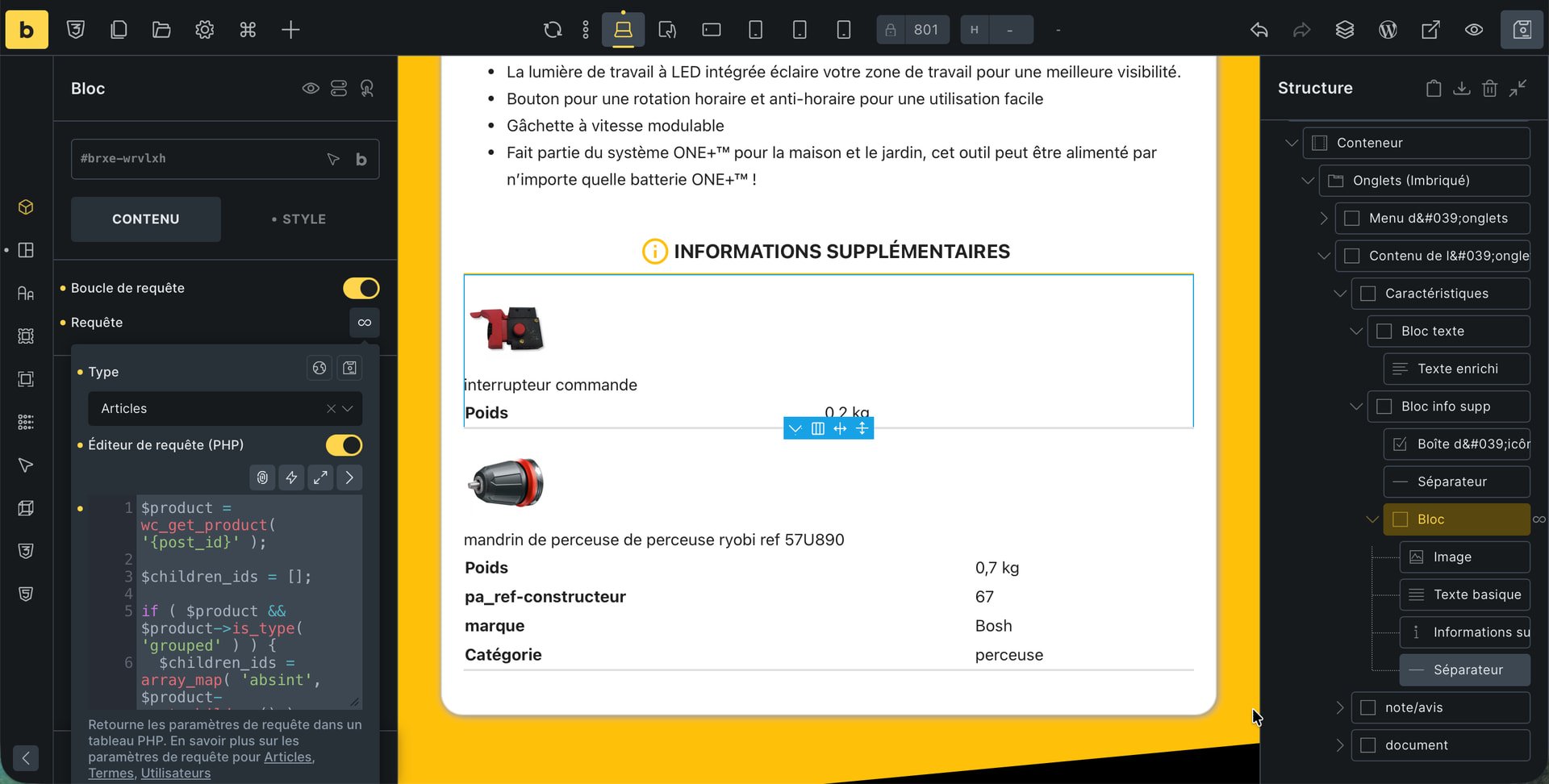 I recently contacted Bricks support by email because I was having a query loop issue. I couldn’t display the products that make up a grouped product in order to create my own cards.