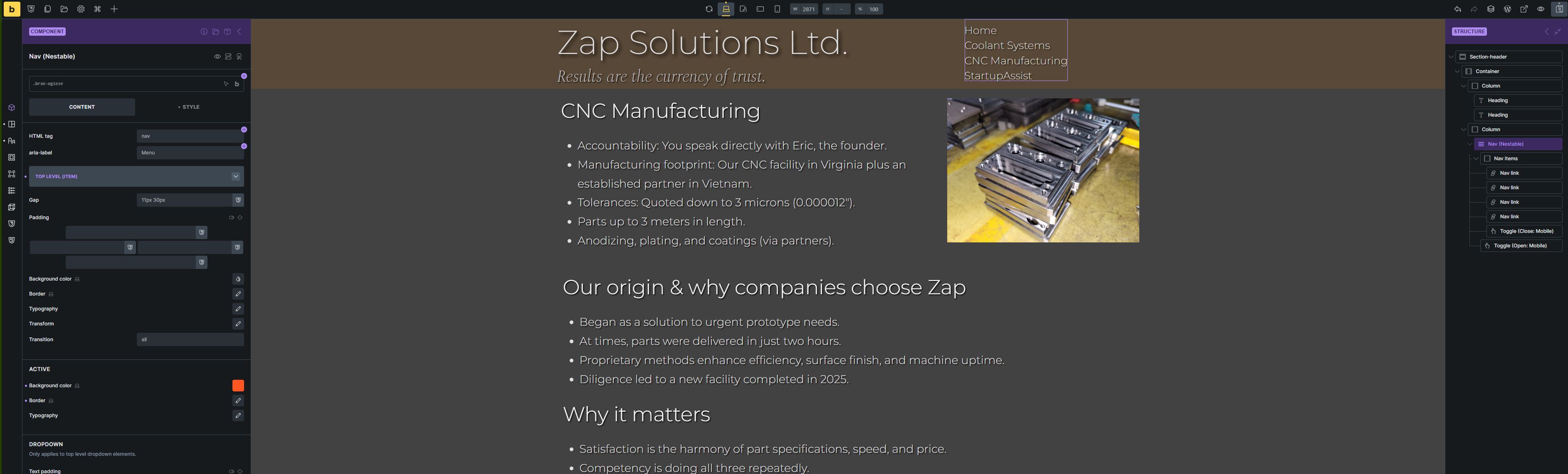 I have tried some things, admittedly with the help of AI, to cause my nav links to change when said page is active. This is a clear indicator to the reader of what page they are on. I tried some color shifts and border as seen in this screenshot for ‘active’ in the nav-nestable. Nothing. I then tried a bunch of CSS code that AI wanted me to, none of that worked. Any ideas how to do this? Preferably in the GUI, but I can put CSS somewhere if it is needed. Thanks!