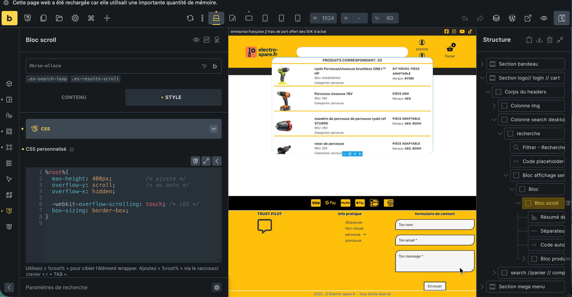 The problem is that the scrollbar isn’t displayed in a fixed position, and customizing it requires using CSS.
