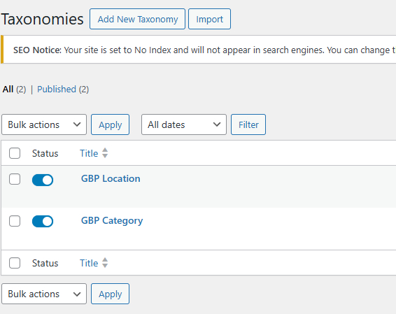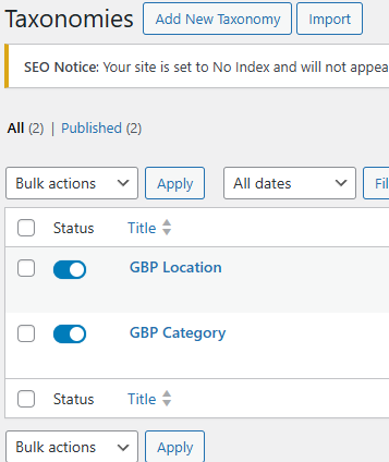 your gbp location should be a different registered taxonomy and the gbp category should be different registered taxonomy too.