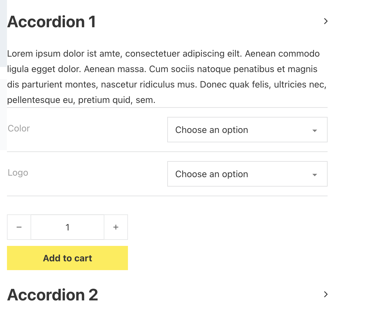 I have an Add to cart element inside a nestable accordion on a single product page. Inside the nestable accordion, the characters "> get added to each line of the attribute swatches: