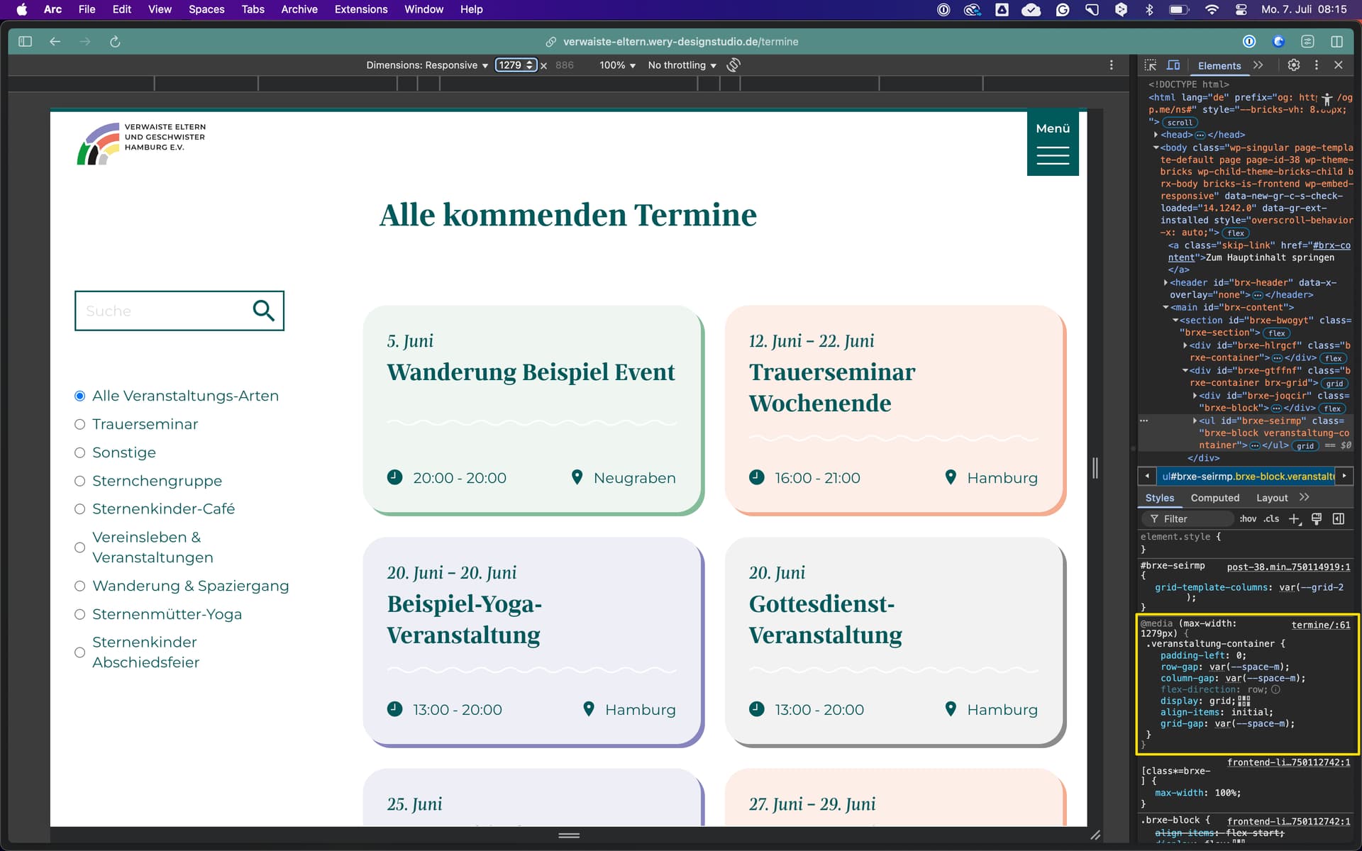Probably caching? Clear the fastest cache and your browser cache. On my end, it works until 1279px, because there’s still a media query, preventing the grid to work on a viewport larger than 1279px: