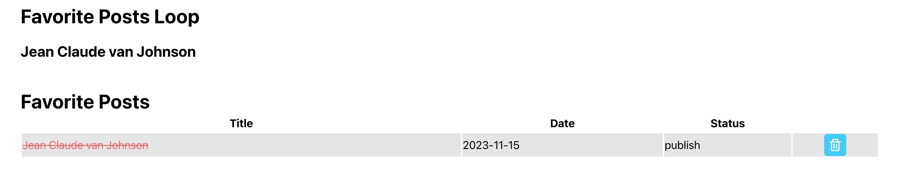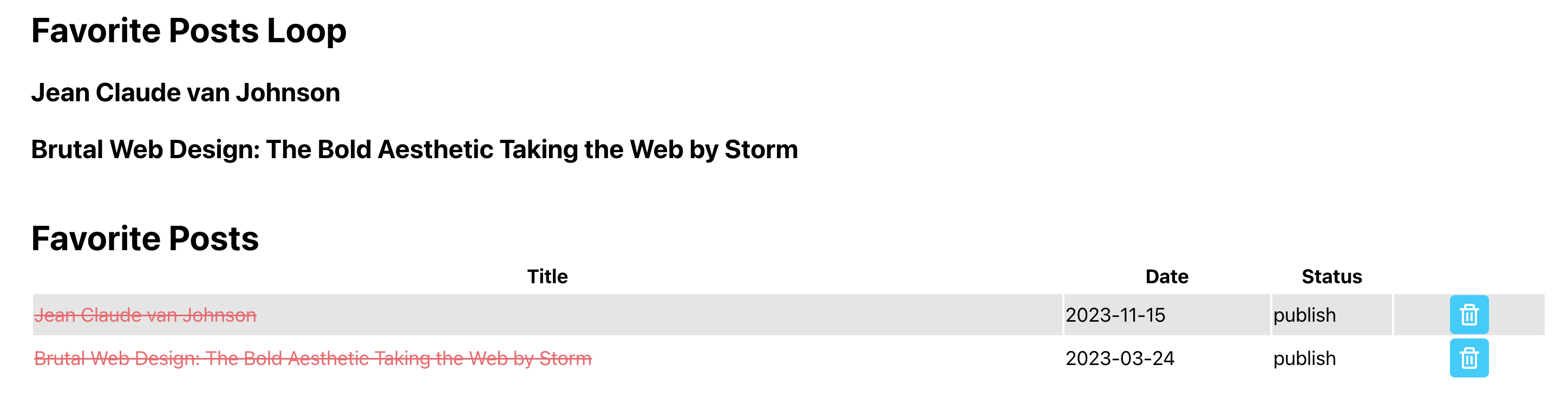 The screenshot shows the loop at the top and the shortcode at the bottom.