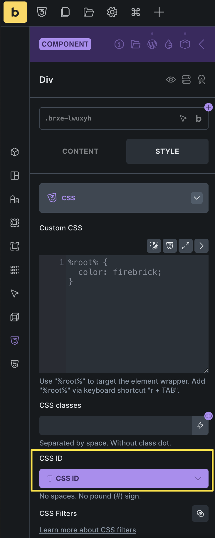 When I right-click a component, Bricks allows me to copy the CSS ID. My intention is to use this ID for internal page navigation (anchor links), e.g. jumping to a specific section on the same page, including smooth scrolling.