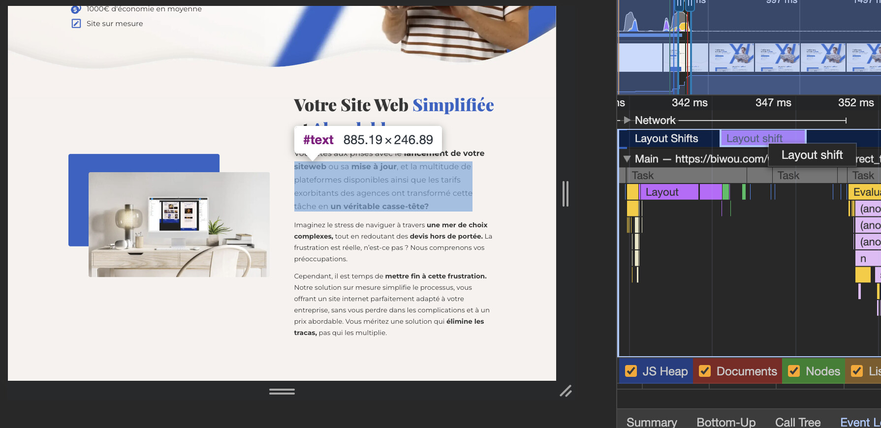 I just don’t understand what is creating the layout shift, from what I can see there is none. It’s the first time that I am getting this message, so I don’t fully understand it for the moment. Also it does not happen on mobile even though the text element is not changed.