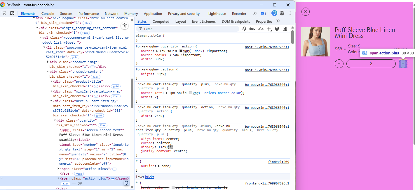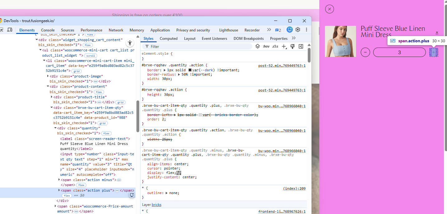 The problem occurs when I modify the quantity, either through the input itself or the decrease/increase buttons… the style gets damaged…
