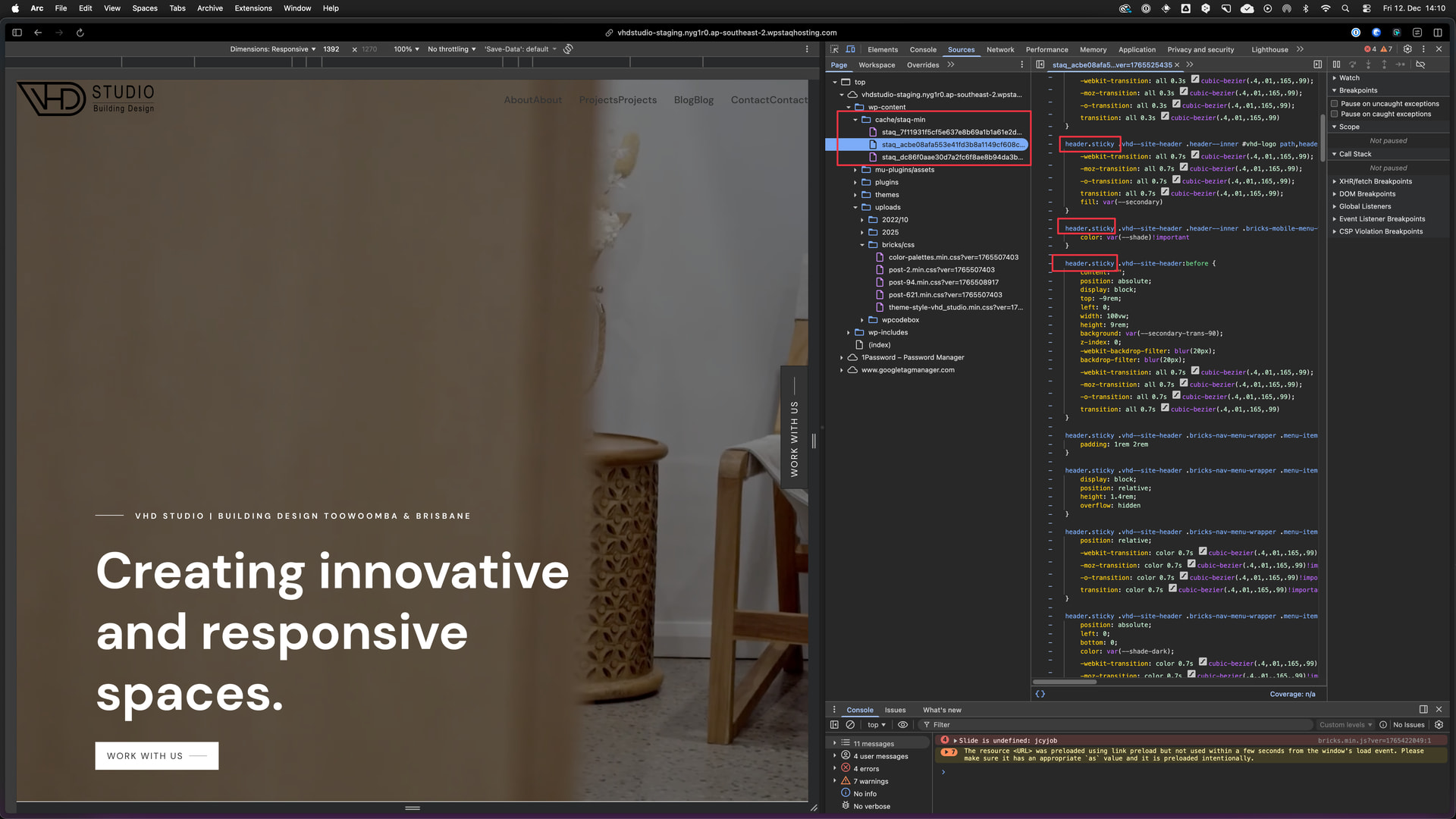 This appears on both staging and live environments after the Bricks update.