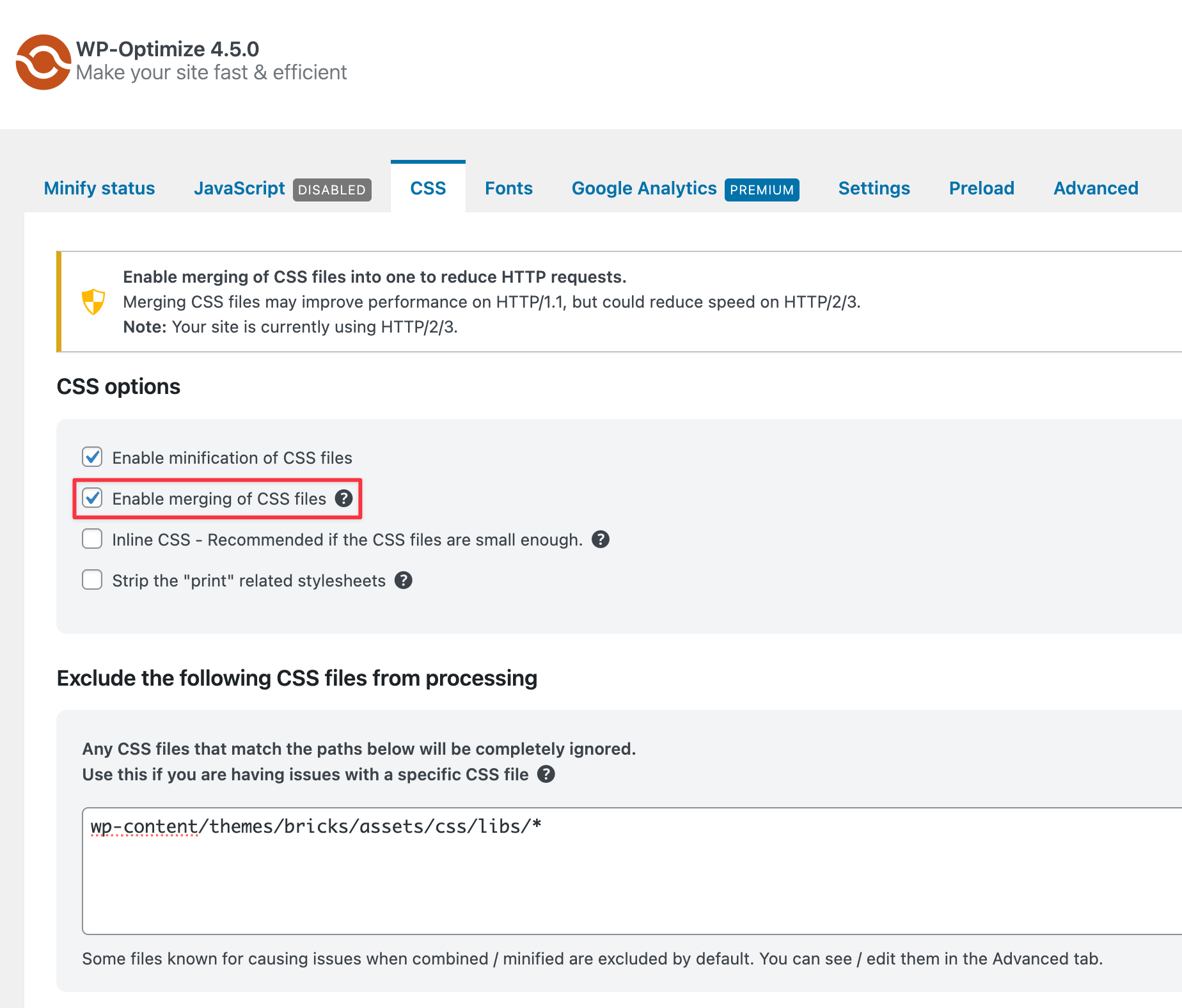 An alternative solution would be to exclude the following path from processing (see screenshot): /wp-content/themes/bricks/assets/css/libs/*