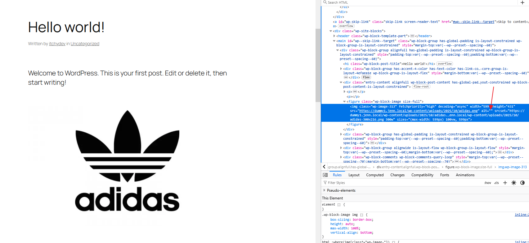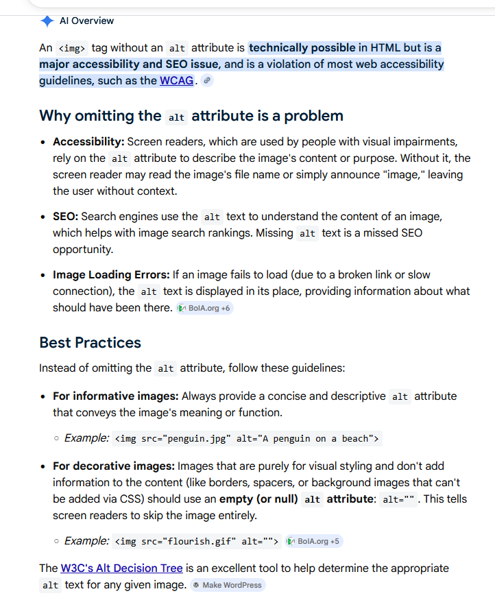 I made attempts to correct this behavior using both a PHP filter and JavaScript in order to enforce a proper alt="" attribute. However, neither approach was successful, as the invalid attribute appears to be injected or overridden at a later stage in the rendering process. Explicitly setting an empty alt text within the image settings also does not resolve the issue.