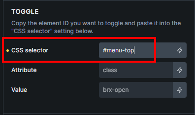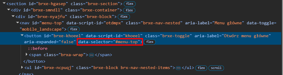 To testing, You can add data-selector=“#menu-top” attribute to menu button.