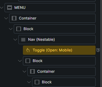 The Toggle automatically detects the Offcanvas or Nav (Nestable) context it is placed in.