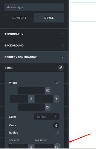 If the border panel or shadow box is open, it will be placed on the modified element section. Maybe it is better that the search section and modified element are always at the top.