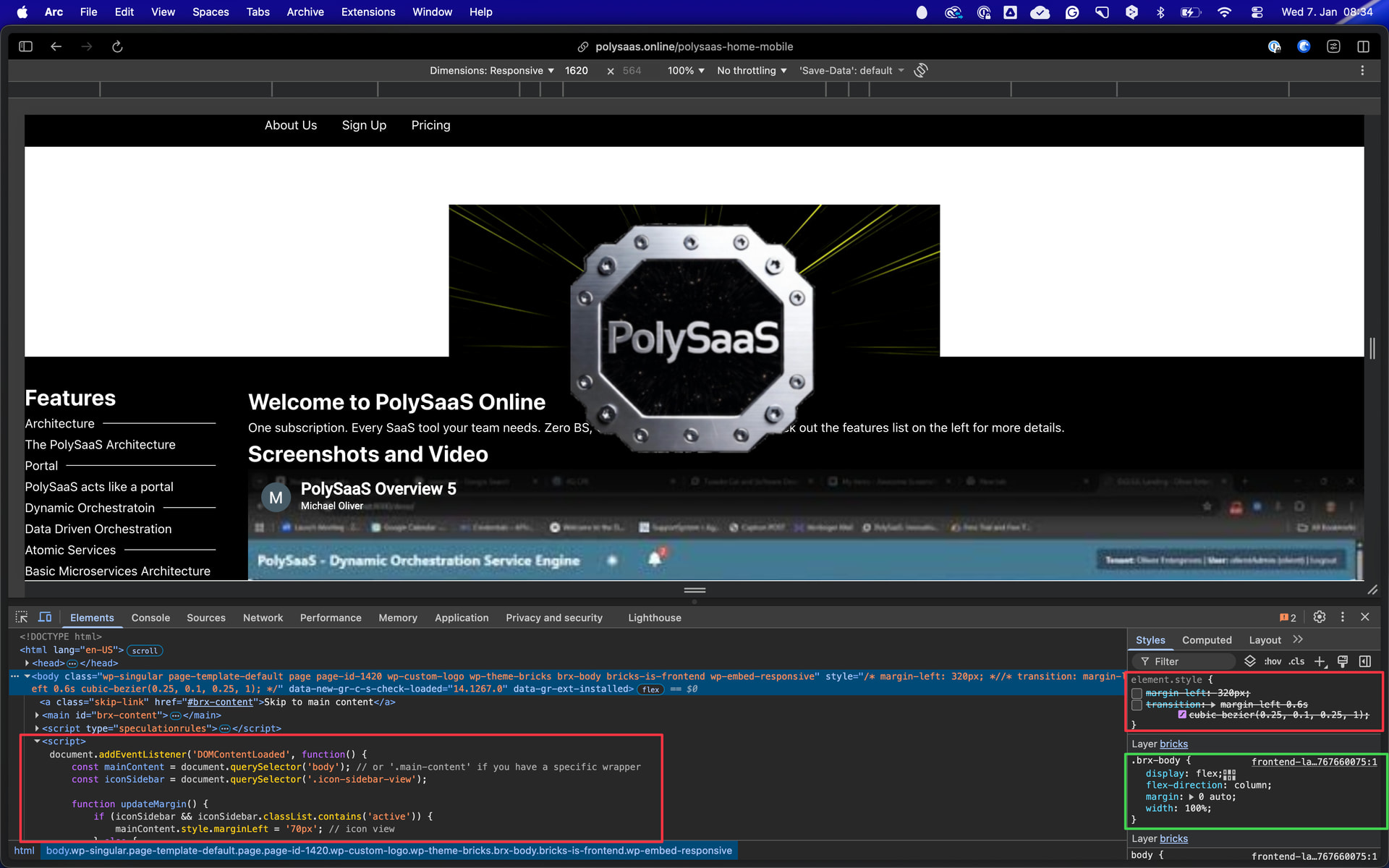 Thanks, that helps a lot. So I confirmed that it wasn’t just the bricks pages; other pages in TT5 were showing the same thing. So I created two blank pages. In one, I edited in bricks and added a section , a container and s heading. Without settings at all on any of the element, the 320px left margin was there.. I added a page and added similar columns, >column > heading. Both had the 320PX left margin so i decided to deactivate or delete all plugins.
