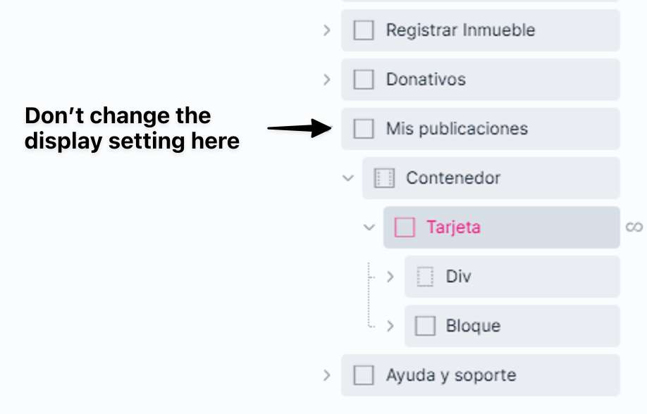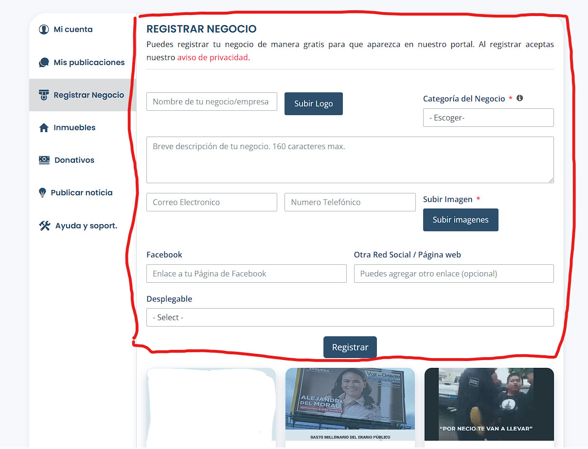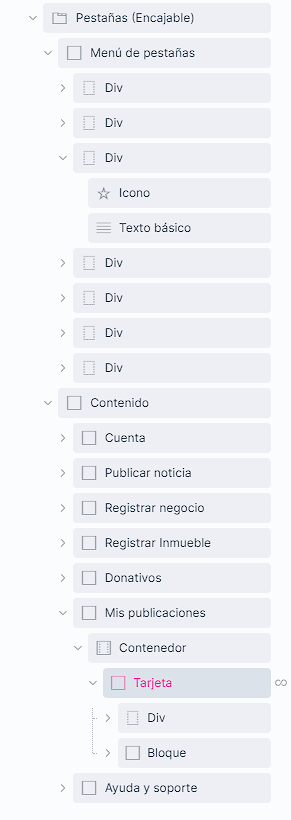 I’m creating a “my account” page which is almost done. In it, use the “tabs” widget to create categories and dynamic content in which the user can register a business, a property, change their account information, request help, etc.