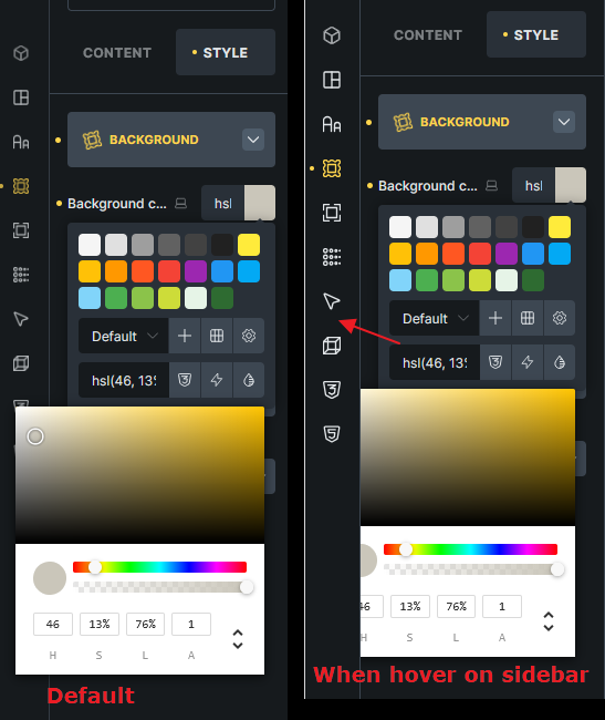 When you hover the quick access bar while opening the color picker, then the z-index of the quick access bar will be higher than the color picker so you can choose the items on it.
