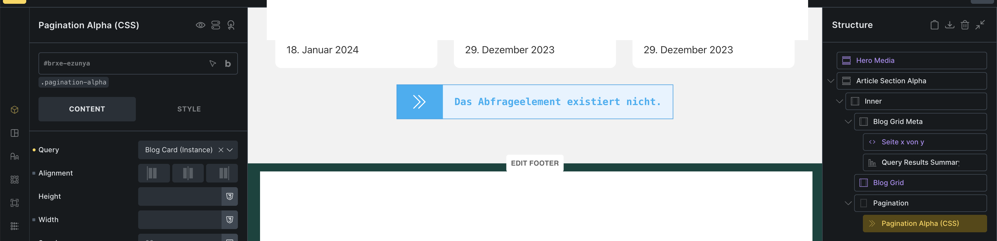 I implemented method 2 now, with Blog grid > Blog card (component), but the Query Results Summary element doesn’t work with a component instance.