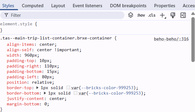 And seems to referencing row 316 in the css but the actual live settings in Bricks are as follows…