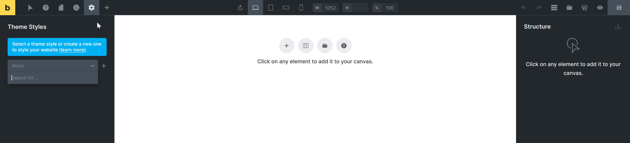 New Wordpress Install. Under Brick Settings/Theme Styles/ Dropdown no choices are available.