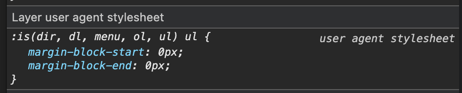 Since we don’t have ul margin defaults and again rely on the browser defaults, we don’t add a “magic number” to add a margin if there’s a ul in the accordion. But you can do it, if you want/need to.