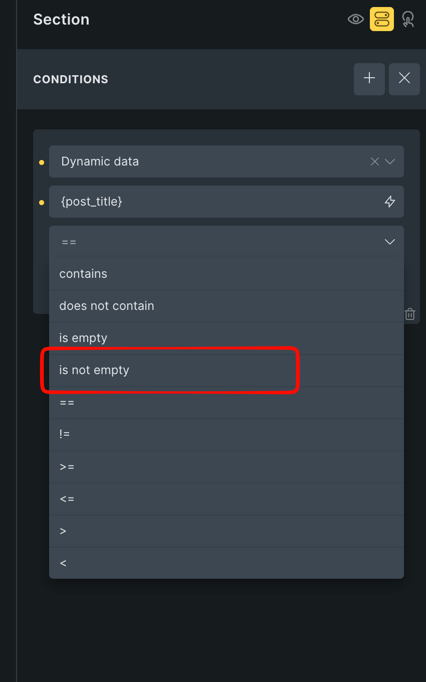 Want to add no sarch results content block in the Search Results template. Currently, it only shows the query result count. Tried to use one of element conditions as shown attached image but couldn’t hide the block when there’s no search result.