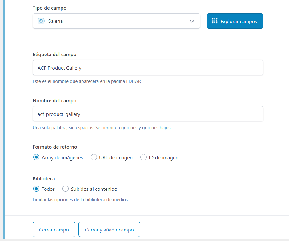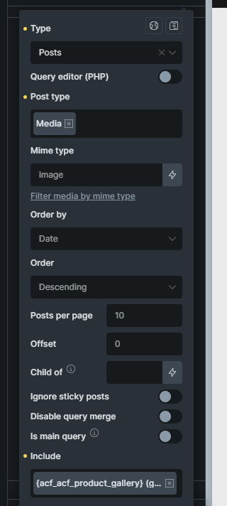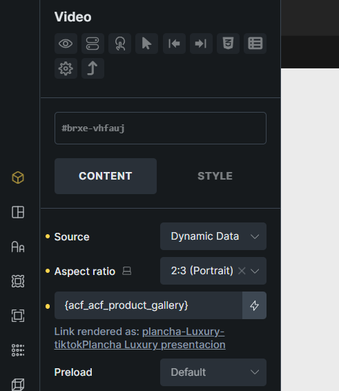 I also tried modifying the gallery configuration in ACF, testing different dynamic data types in the video element and various video settings, but nothing worked. The closest I got was using the ‘featured image,’ but in the end, it outputs a .jpg instead of .mp4 or the actual video format.