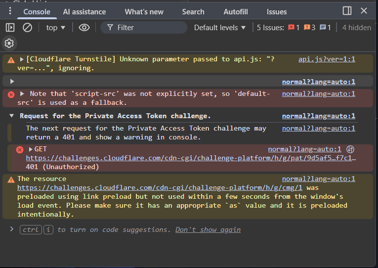 [Cloudflare Turnstile] Unknown parameter passed to api.js: "?ver=...", ignoring.