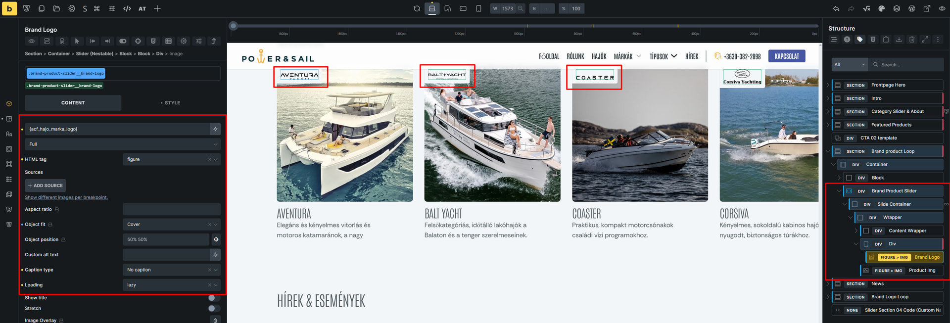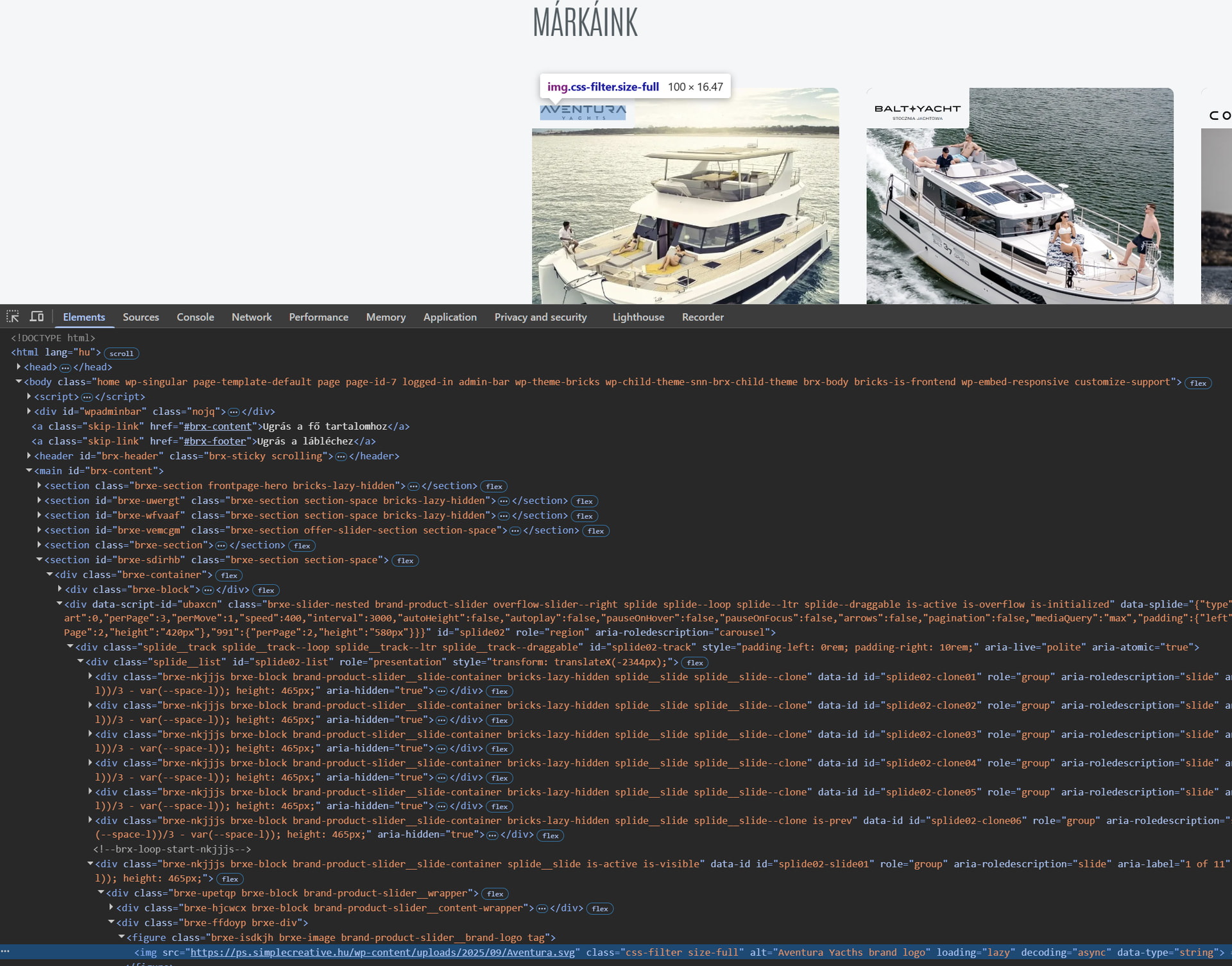 The brand image has a wrapper div (absolute position)