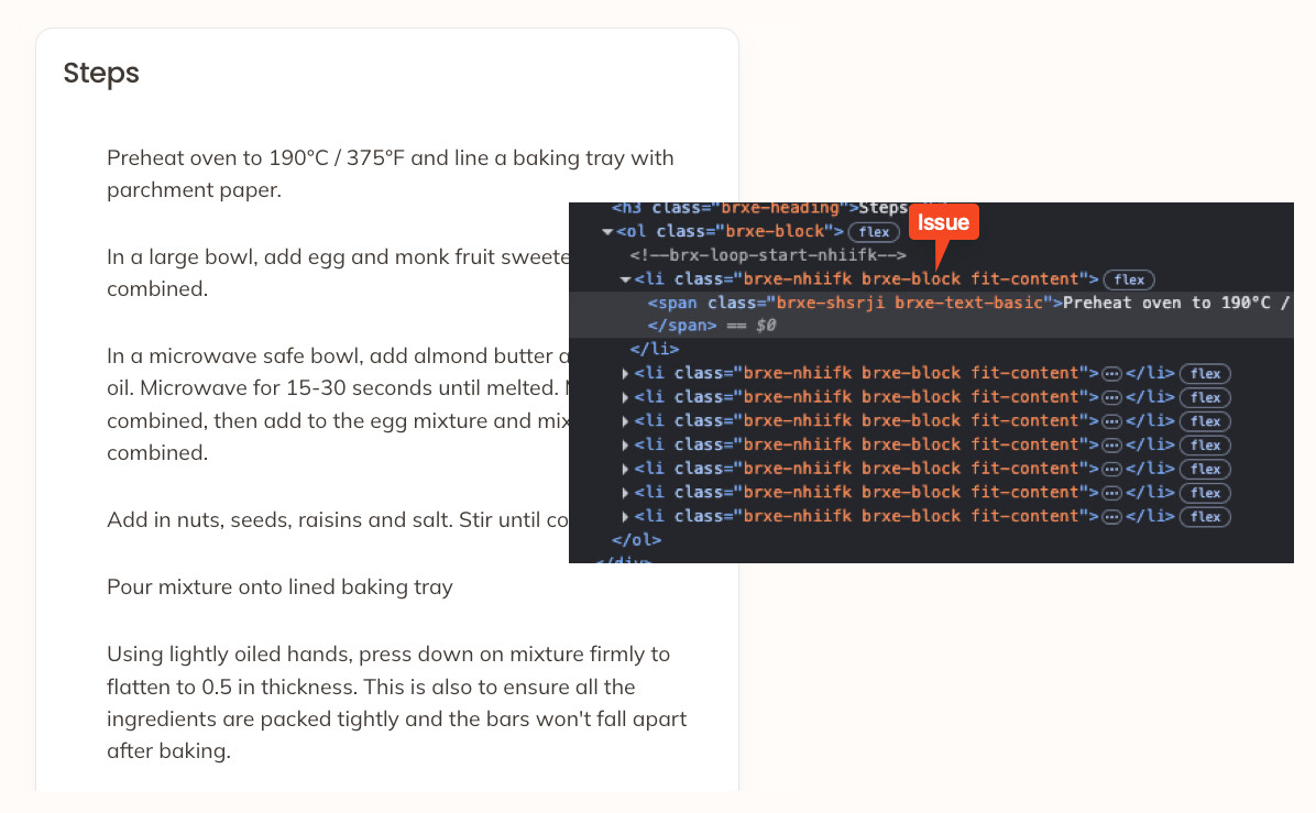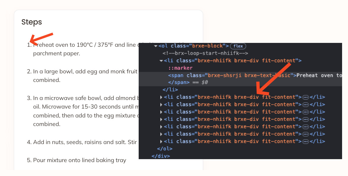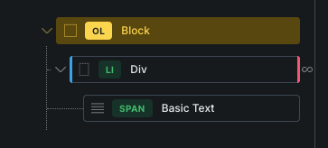 At present i’ve added the query loop to a div wrapping the bricks list element. Though the page looks fine, the code is incorrect as a new ‘ul’ element is created for every list element.