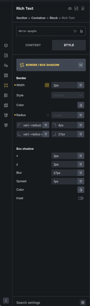 I suggest slightly revising the Border tab in the Style panel. Currently, only border and box-shadow are listed under it, and you have to click on the pen icon to access the options. We could save ourselves this extra click if the options were directly available.