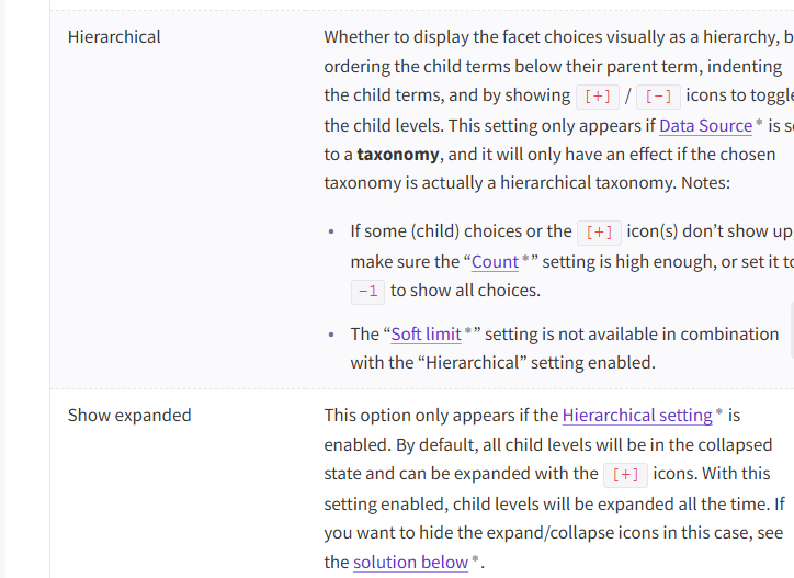 What I am missing is collapsible subcategories list inside a hierarchical checkbox filter element.